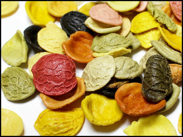 美美的五彩顏色則是來自紅甜菜、胡蘿蔔、薑黃粉、羅勒、菠菜、番茄、墨魚汁等新鮮蔬果和天然原料,