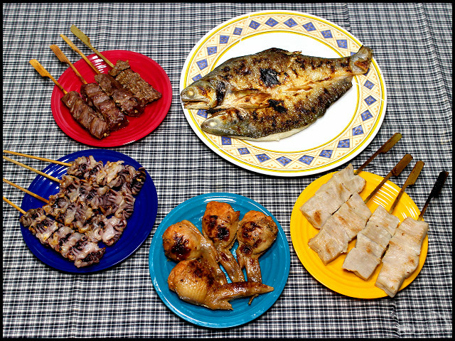 焱烤牛肋條、焱烤厚切松阪豬、焱烤明太子雞翅、焱烤花枝鬚、焱烤午仔魚!